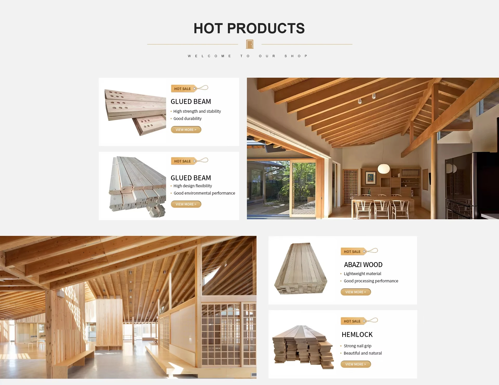 主な製品:接着梁、接着柱、木製梁、防食木製梁、炭化木製梁